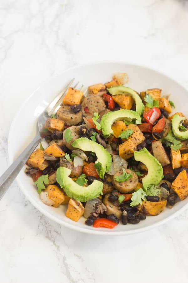 One Pan Southwestern Chicken Sausage Sweet Potato Bake
